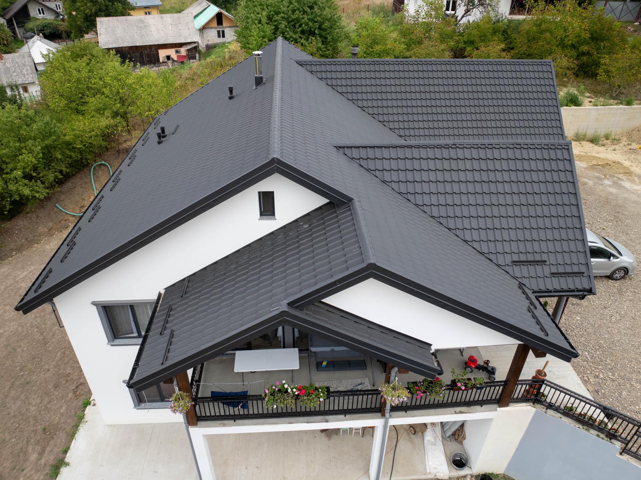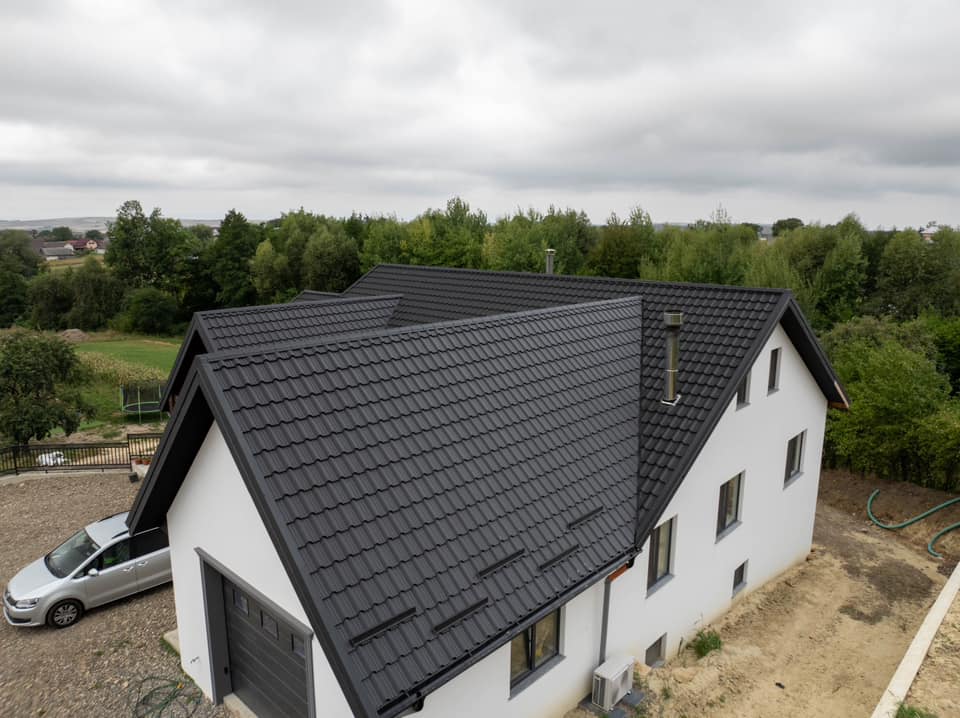 Acoperiş realizat din tablă tip ţiglă metalică Blachotrapez model ENIGMA.