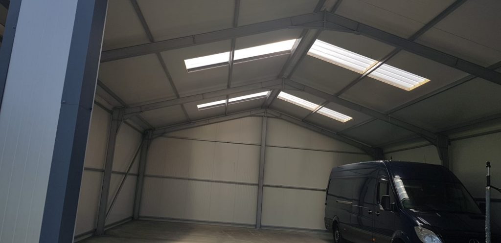 Garaj metalic modular modern cu panouri sandwich